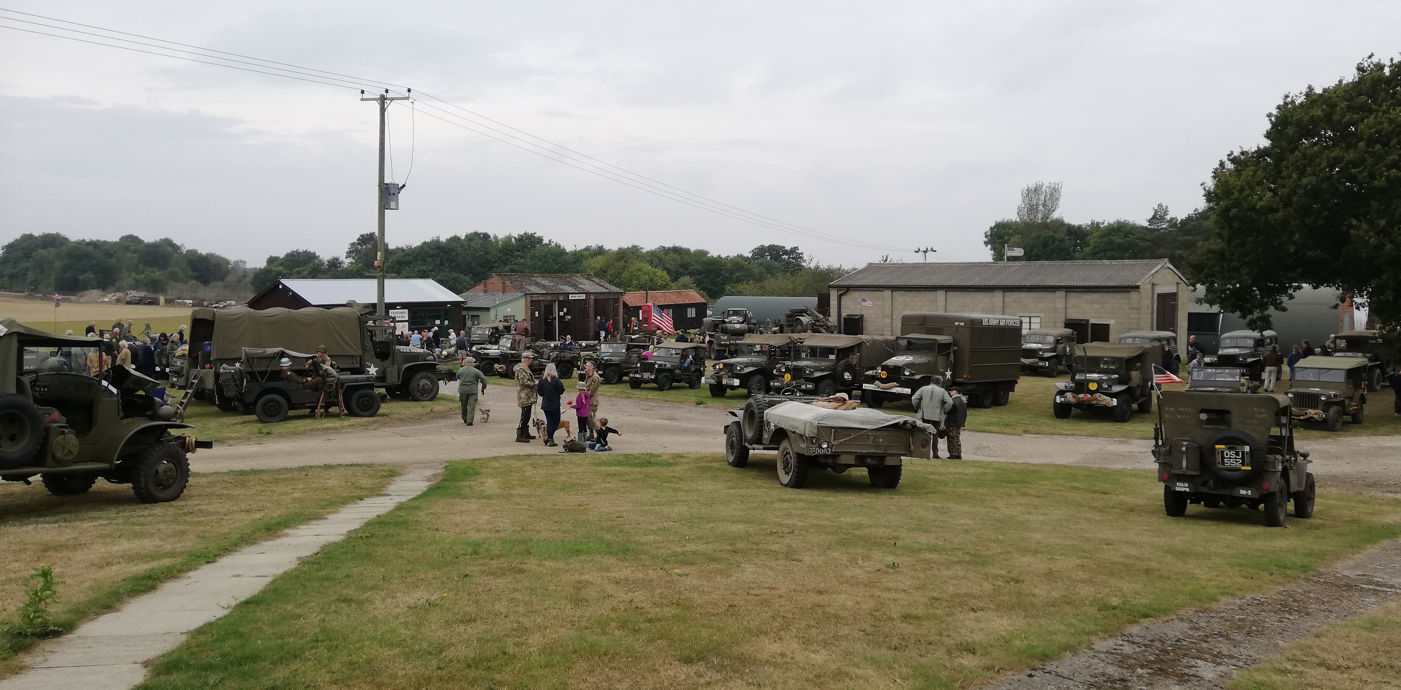 The 2017 Jeep Day was a great success, breaking all previous records.We were blessed with fine weather and 49 military vehicles including a half track, went in convoy around the farm tracks and rural roads. Members of the public were numerous and they gathered to see the spectacle of the convoy and visit the various Museums.